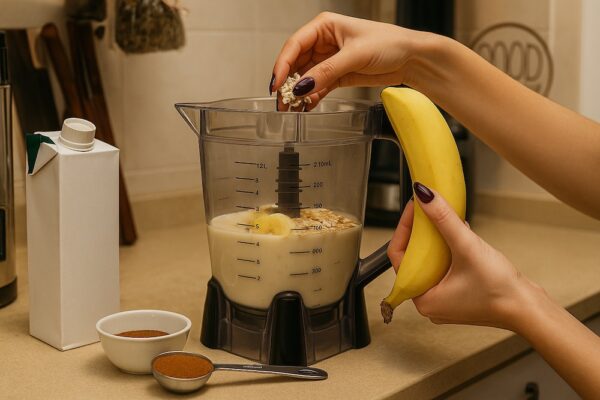 אני מכינה את שייק בננה ושיבולת שועל בימים שאני צריכה יציבות. לא ריגוש ולא סוכר שמתפוצץ – פשוט אנרגיה איטית, מאוזנת, מרגיעה.