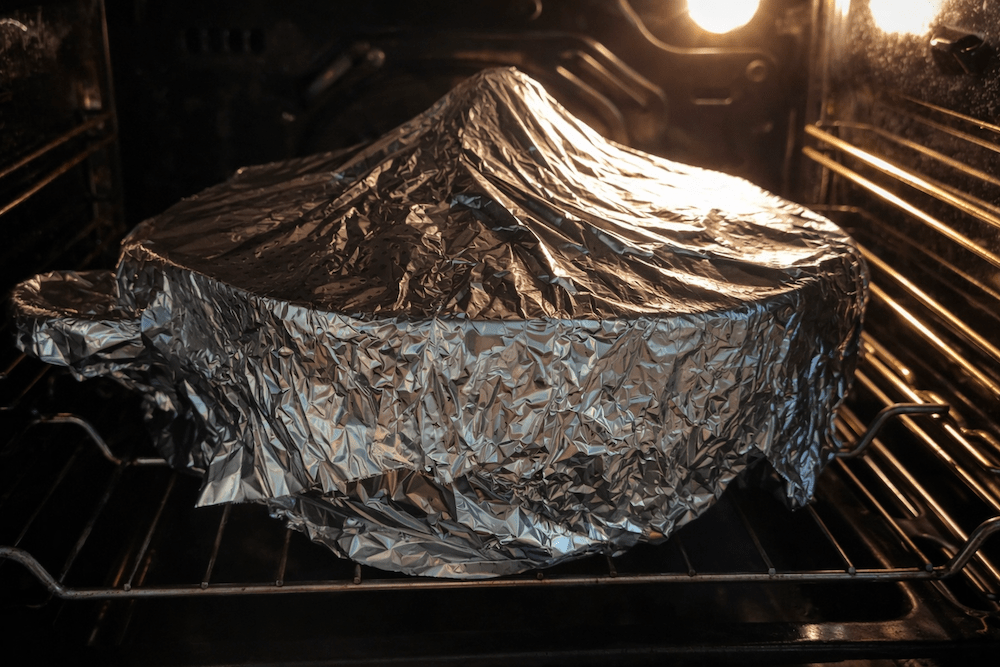 - נכסה את הסיר היטב בנייר אלומיניום ונכניס לתנור לשעה וחצי.