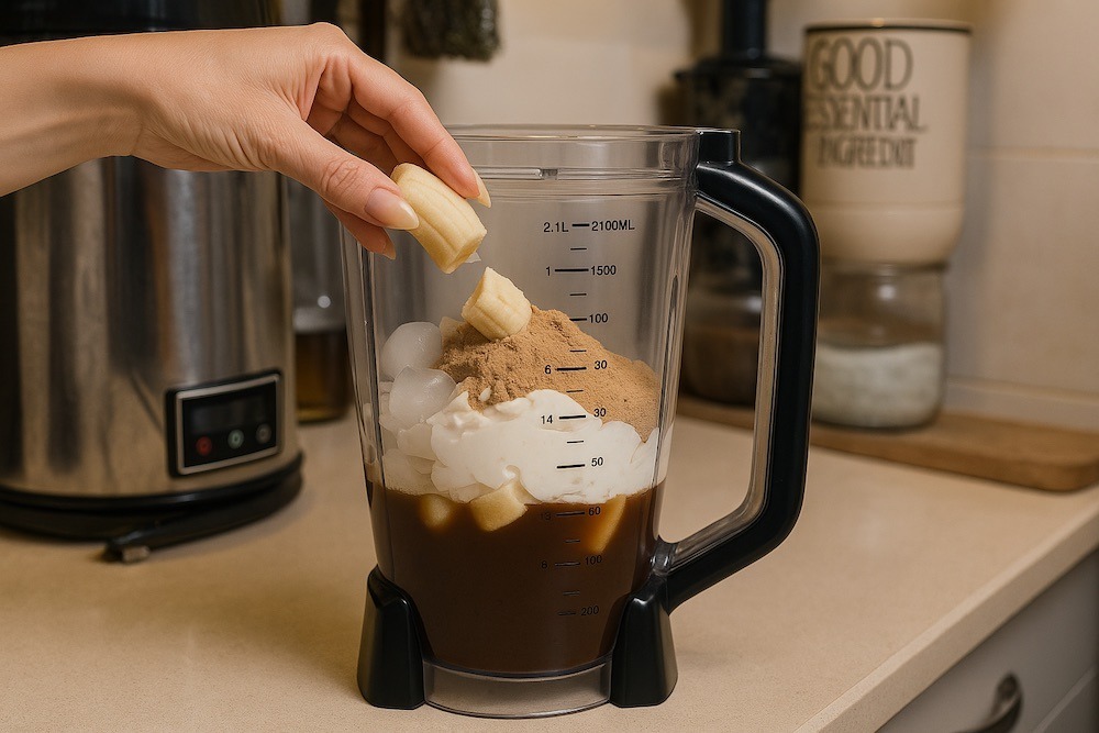 Coffee-flavoured protein smoothie is the perfect solution for mornings when time is short but expectations are high — for radiant skin, a sharp mind, and a steady feeling of fullness.