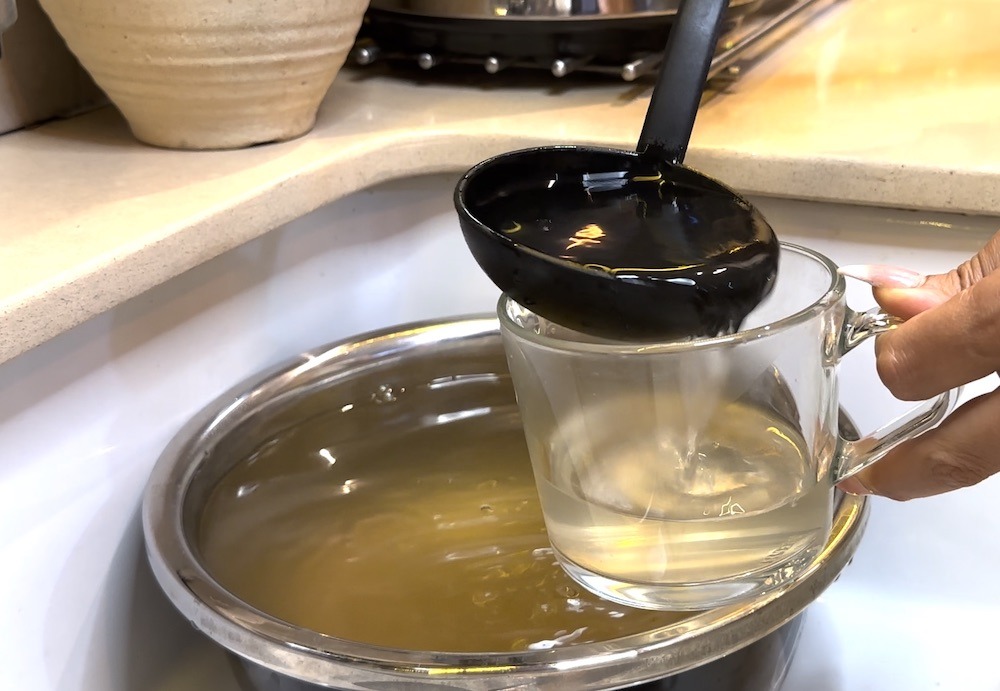 - לאחר זמן המנוחה, המשקה מוכן. סננו את הנוזל בעזרת מסננת